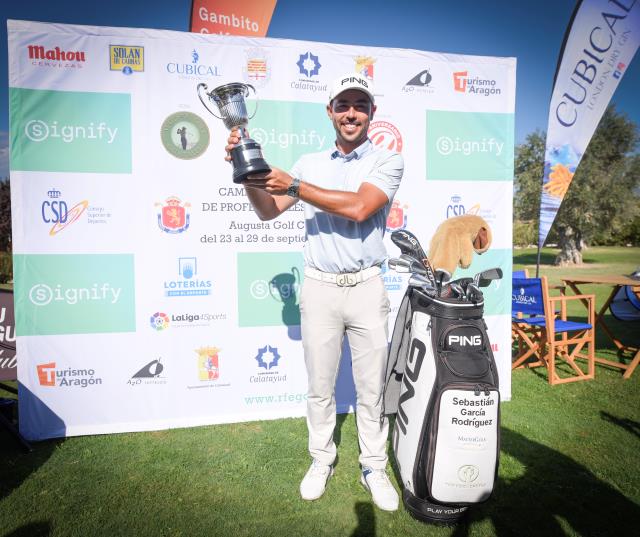 Sebastián García ha vuelto a exhibir la mayor de sus sonrisas por segundo año consecutivo en el Signify Campeonato de España de Profesionales Masculino, la consecuencia directa de encadenar dos victorias que constituyen auténtica gesta, un doble triunfo que no se conseguía desde que Miguel Ángel Jiménez lo inscribiese en el palmarés de este torneo en el bienio 2002-2003.
