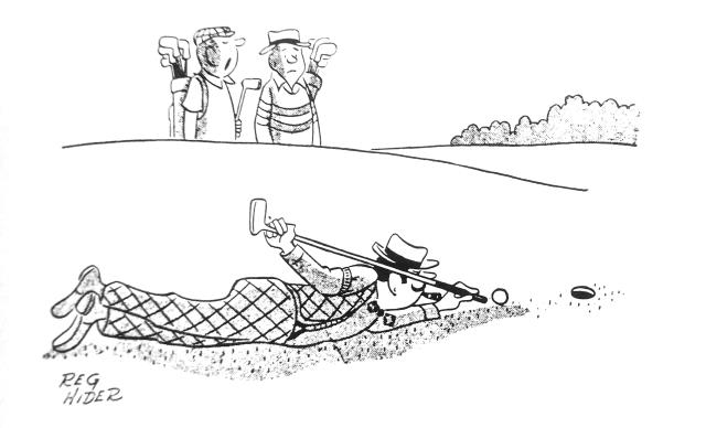 El buen humor es una de las características de los jugadores de golf, aunque algunas veces nos den tentaciones maliciosas con el putter, por ejemplo, cuando por un pequeño error perdemos un hoyo.
